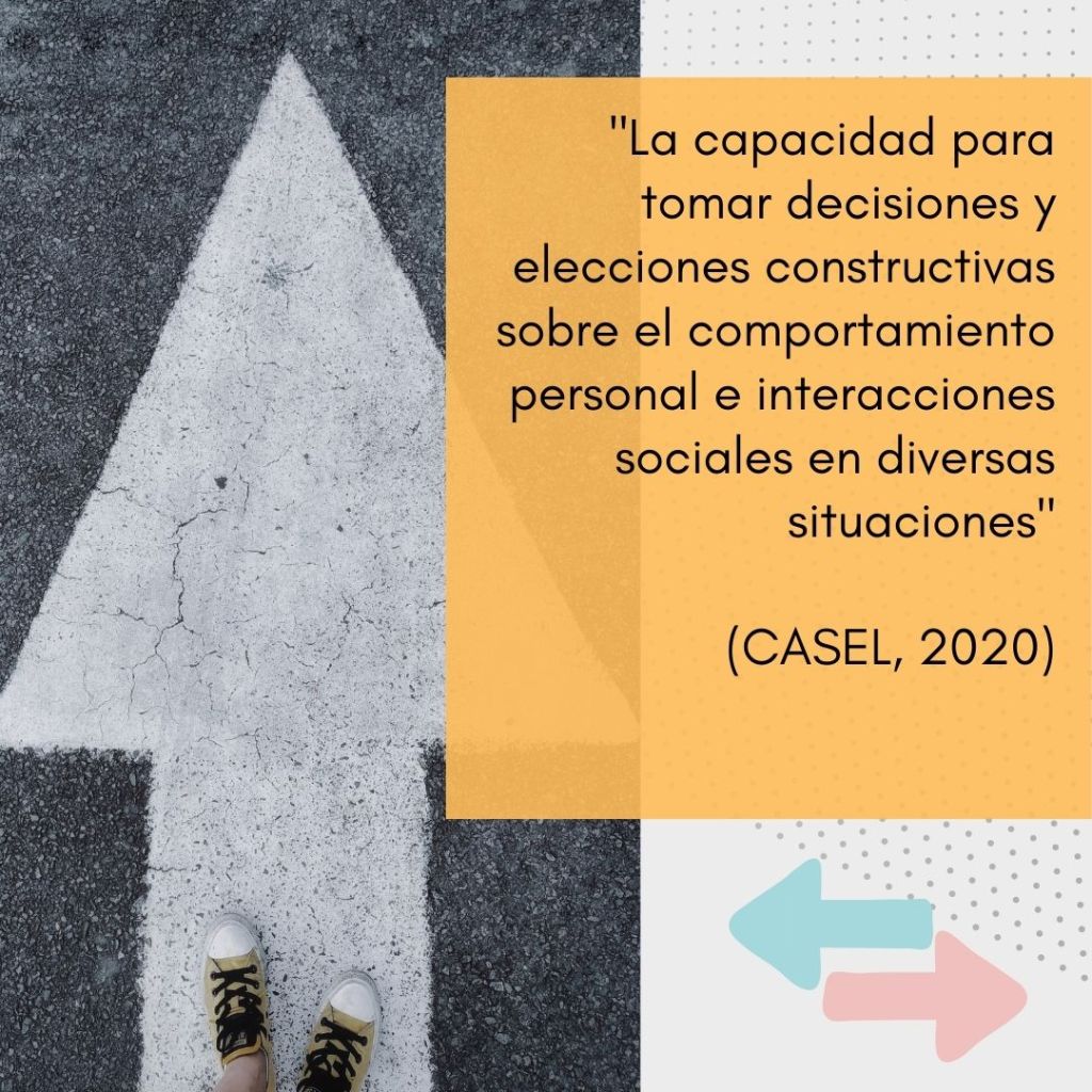 La última área del Aprendizaje Socioemocional se refiere a la toma de decisiones responsables. Según CASEL, es “la capacidad para tomar decisiones y elecciones constructivas sobre el comportamiento personal e interacciones sociales en diversas situaciones (CASEL, 2020)”.